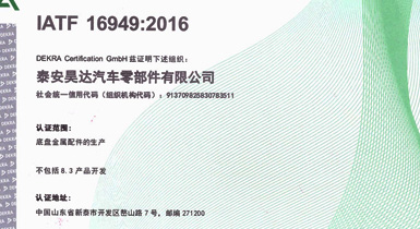 泰安昊達(dá)汽車零部件有限公司位于新泰市經(jīng)濟開發(fā)區(qū)嶅山路7號,公司成立于2011年,是一家生產(chǎn)中、重型卡車底盤鑄鍛件、焊接件、發(fā)動機配件的專業(yè)廠家,廠區(qū)占地面積101畝,2018年建設(shè)年產(chǎn)300萬件汽車零部件項目,項目總投資3.16億元,總建筑面積3.6萬平方米,是新泰市汽車裝配產(chǎn)業(yè)鏈的重點項目、2018年、2019年泰安重點項目,現(xiàn)已建設(shè)完畢,于2019年1月1日正式投入使用,設(shè)備新上覆膜砂自動化鑄造生產(chǎn)線1條、熱模鍛生產(chǎn)線6條、自動化焊接生產(chǎn)線10條、CNC加工設(shè)備200余臺套。 主要產(chǎn)品:中、重卡車底盤配件、轉(zhuǎn)向配件、中后橋氣室支架總成、中后橋配件、前橋轉(zhuǎn)向節(jié)臂、焊接配件、發(fā)動機配件。產(chǎn)品主要銷往中國重汽集團、市場份額約50%,位居行業(yè)鑄件產(chǎn)品前三。 公司擁有IATF16949:2016國際標(biāo)準(zhǔn)質(zhì)量管理體系認(rèn)證,擁有實 ......